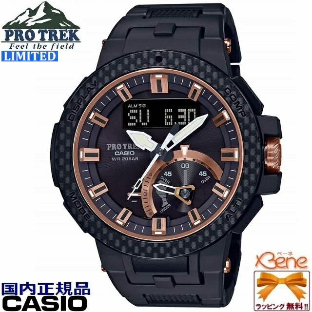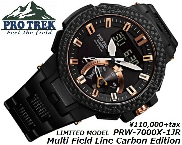 [限定1300本!正規品/国内送料無料]CASIO PRO-TREK/プロトレックMULTI FIELD LINE Carbon Editionメンズソーラー電波アナデジ 20気圧防水トリプルセンサー サファイアガラスフィールドコンポジットバンドブラック×ローズゴールド PRW-7000X-1JR