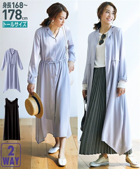 ワンピース ロング マキシ トールサイズ レディース 2点セット イレギュラーヘム シャツ + インナー タンクトップ サックス/ネイビー M/L ニッセン