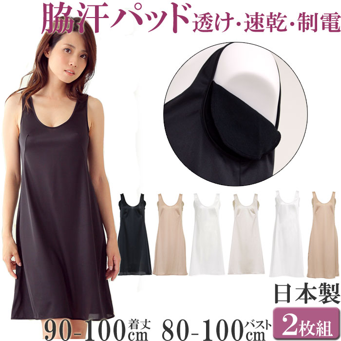 脇汗 インナー タンクトップ スリップ ロング ペチコート ワンピース インナー レディース セット 2枚 [M:1/1] スリップ 大きいサイズ 5l 3l 4l LL L M S 90cm100cm丈 脇汗パッド 汗取り インナー ワンピース ロング 日本製 下着 レディースインナー Slip inner ladies