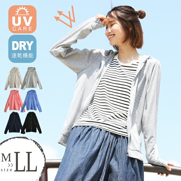 uv パーカー レディース uvカット レディース おしゃれ 紫外線対策 無地 ジップアップパーカー ジップパーカー 長袖 春夏 40代 30代 50代 カーディガン 薄手 夏 ルームウェア 部屋着 [M便 1/1]